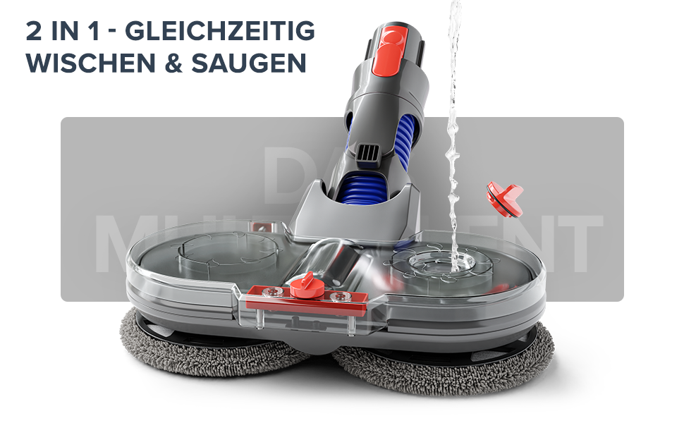 Durch den Dripl-Wischaufsatz verwandelt sich dein Dyson innerhalb von sekunden zu einem 2in1 - Wischer! Diese Technologie ermöglicht es dir Zeit & Mühe im Haushalt zu sparen!